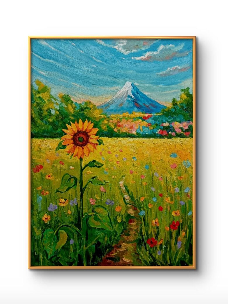 The painting “The Sunflower on the Mountain Peak” symbolizes a person’s constant striving toward the light, hope, and lofty goals: